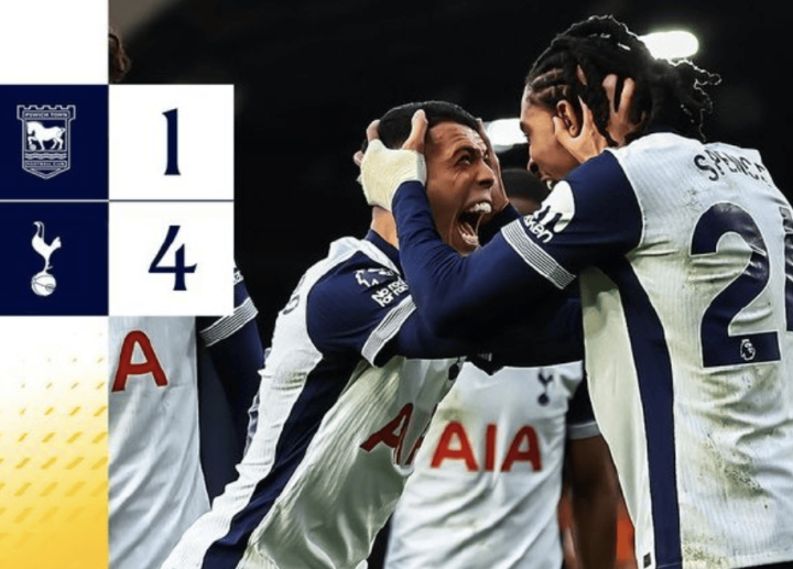 本轮英超,热刺4-1击败伊普斯维奇。据统计,热刺自2023年12月以来首次取得英超三连胜,在此之前,球队15场英超也仅取得3场胜利,其余比赛2平10负。