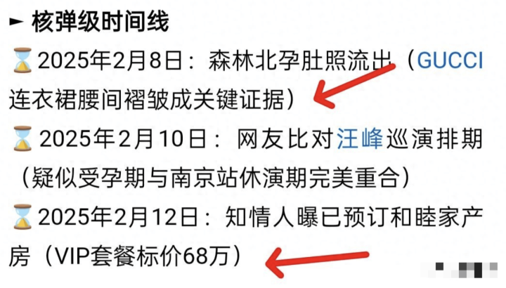 一时间,网友们纷纷化身 “福尔摩斯”,从森林北的社交动态、日常照片中寻找蛛丝马迹。有人发现,森林北近期发布的照片中,腹部似乎微微隆起,穿着也越发宽松,似乎在刻意遮挡着什么;还有人爆料,汪峰已经为其预定了 VIP 产房,种种迹象都在暗示着这个传闻的真实性。而汪峰和森林北方面,面对这铺天盖地的舆论,始终保持着沉默,既没有承认也没有否认,这更是让网友们的好奇心被无限放大,各种猜测甚嚣尘上。